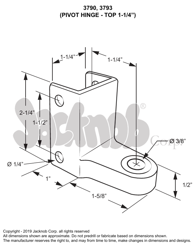 This Zamac Molded Hinge TOP Bracket (3790) attaches to a 1 1/4" SQUARE Pilaster as part of Door-HINGE System. It... Read more