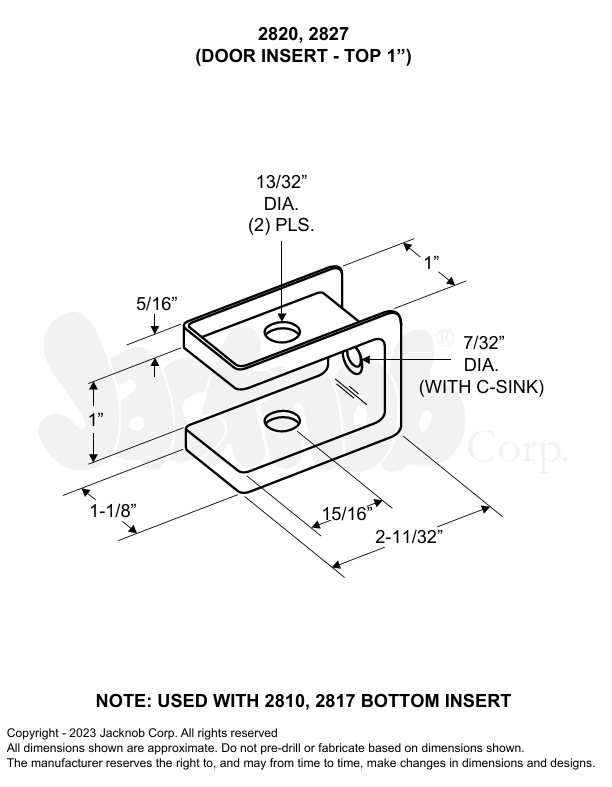 SQUARE -U-Shape Door Insert-Top (2820) Polished Chrome for 1" THICK SQUARE-EDGE Doors. Zamac Molded -