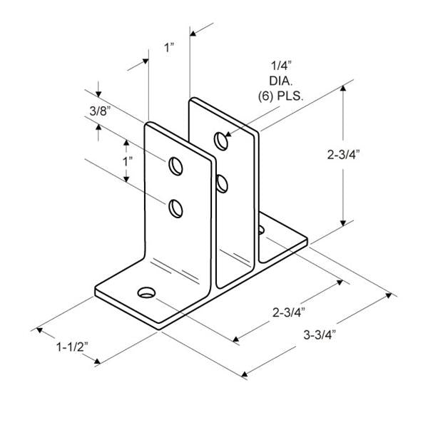 Urinal Screen & Wall Bracket 1614 Two Ear 1" Aluminum (Clear Anodize)